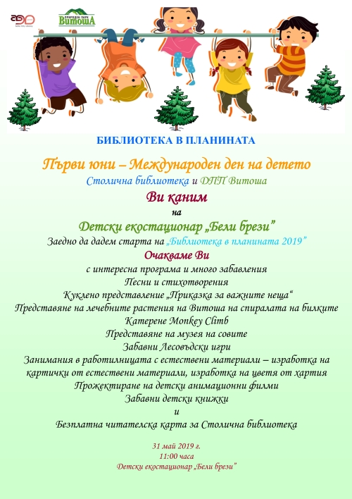 За четвърта поредна година Столична библиотека отправя своето планинско предизвикателство пред всички любители на планината. На 31 май 2019 г. от 11:00 часа на Детския екостационар „Бели брези” по случай Деня на детето Библиотеката на София ще даде старт на инициативата „Библиотека в планината 2019” с мобилната библиотека – Библиобус.