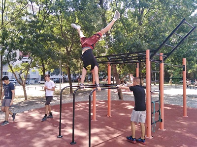 От 10 до 12 ч. Спортен клуб по гимнастика и стрийт фитнес Street Workout Bulgaria превърна в истинско зрелище демонстрациите по стрийт фитнес в „Градината на Доброто“, район „Възраждане“, Зона Б 5.