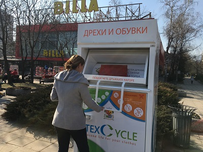 „През 2018 г. проведохме различни инициативи за събиране на стар текстил от домакинствата, в резултат на които бяха събрани и последващо третирани общи 24.5 тона текстилни отпадъци. Опитът ни през изминалата година показа, че гражданите имат нагласа да изхвърлят разделно и текстилните си отпадъци. Резултатите дадоха основание на кмета в края на 2018 г. да предложим на Столичния общински съвет да започнем да изграждаме система за събиране на текстилни отпадъци. След като преминахме през необходимите нормативни процедури и беше избран изпълнител за събирането и последващото третиране на отпадъците, сега стартираме с разполагане на 20 контейнера в различни квартали на Столичната община, като предстои броят им постепенно да се увеличава“. Това коментира зам.-кметът по екология в Столичната община Йоана Христова при представяне на контейнерите. Тя напомни, че правилното събиране и третиране на текстилните отпадъци намалява вредното влияние на този вид отпадък върху компонентите на околната среда, включително и върху качеството на атмосферния въздух.