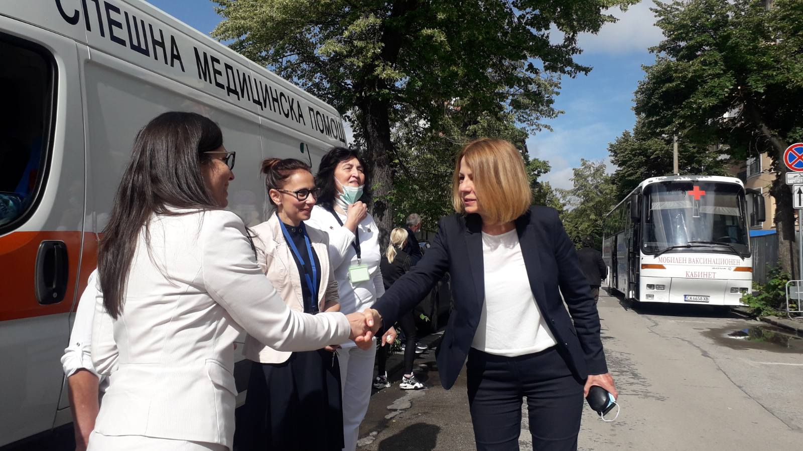 Кметът на София Фандъкова присъства днес на предоставянето на автобус, оборудван като лекарски кабинет на Столичната РЗИ. Бусът е дарение от фондация „Благотворителност и милосърдие“. При откриване на новия пункт за ваксинация шефът на Столичната РЗИ Данчо Пенчев обяви, че утре и в петък мобилният пункт ще бъде разположен на площад „Княз Александър I“, а в почивните дни ще се намира на Летище София – Терминал 1.