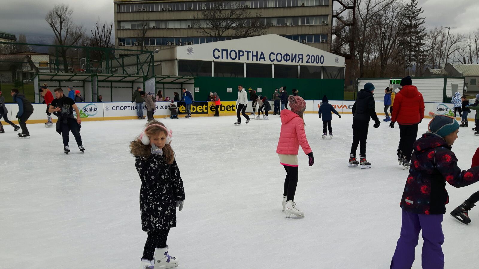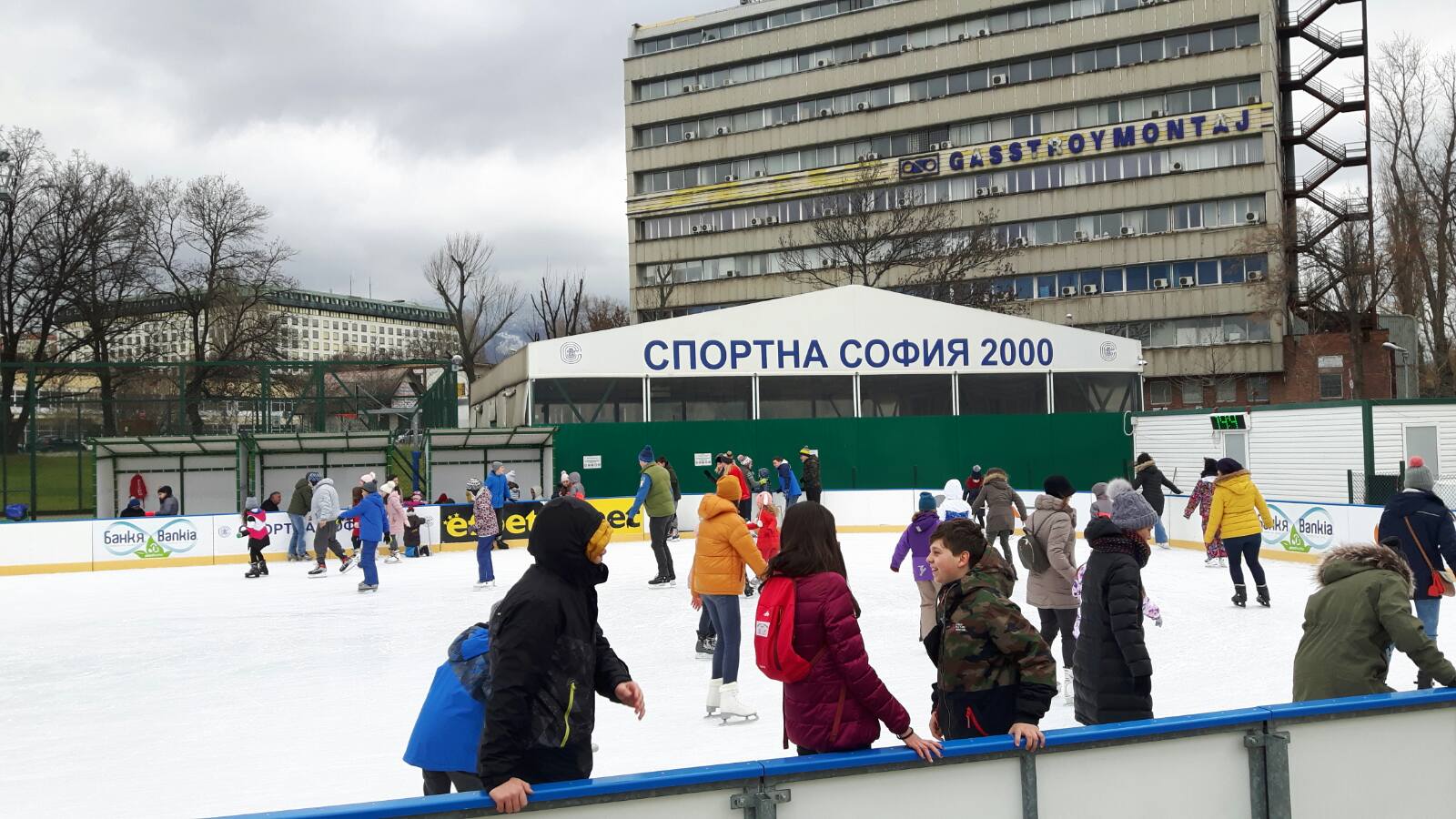Стотици деца и ученици карат кънки на зимната пързалка на „Спортна София"