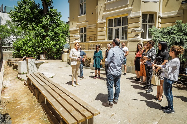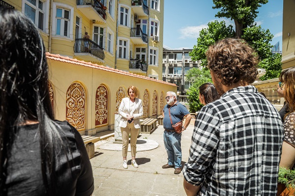 Днес кметът на София Йорданка Фандъкова се срещна с младите художници, които довършват своите стенописи и разгледа работите им.