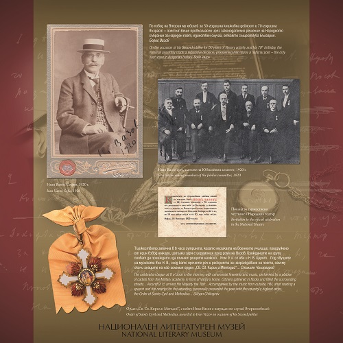 В изложбата са представени и ценни експонати, доказателство за безпределната обич и признателност на целия български народ към Иван Вазов по време на честванията на двата му юбилея – Сребърната лира с венец, дар от Юбилейния комитет, орденът „Св. Св. Кирил и Методий“, Царският указ, с който Вазов е обявен за Народен поет, поздравителни адреси и др.