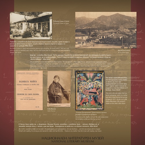 Изложбата се организира от Столична община и Националния литературен музей. В 28 документални пана са проследени основни моменти от житейската и творческа биография на Иван Вазов. Специално място е посветено на семейството – майката на поета Съба Вазова, братята му – ген. Владимир Вазов, ген. Георги Вазов и д-р Борис Вазов. Проследен е животът на Иван Вазов като емигрант в Румъния; престоят в Свищов, Русе, Берковица; годините, които Вазов прекарва и твори в Пловдив; изгнаничеството в Одеса и появата на първия български роман „Под игото“; установяването му в София.