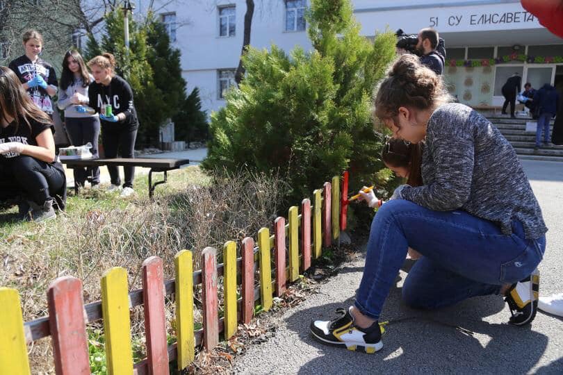 В началото на пролетното почистване, организирано от Столичната община и Столичния инспекторат, възпитаници на 51-во училище „Елисавета Багряна“ заедно със своите учители засадиха дървета, туи и цветя. Обновиха и пейките в двора на училището.