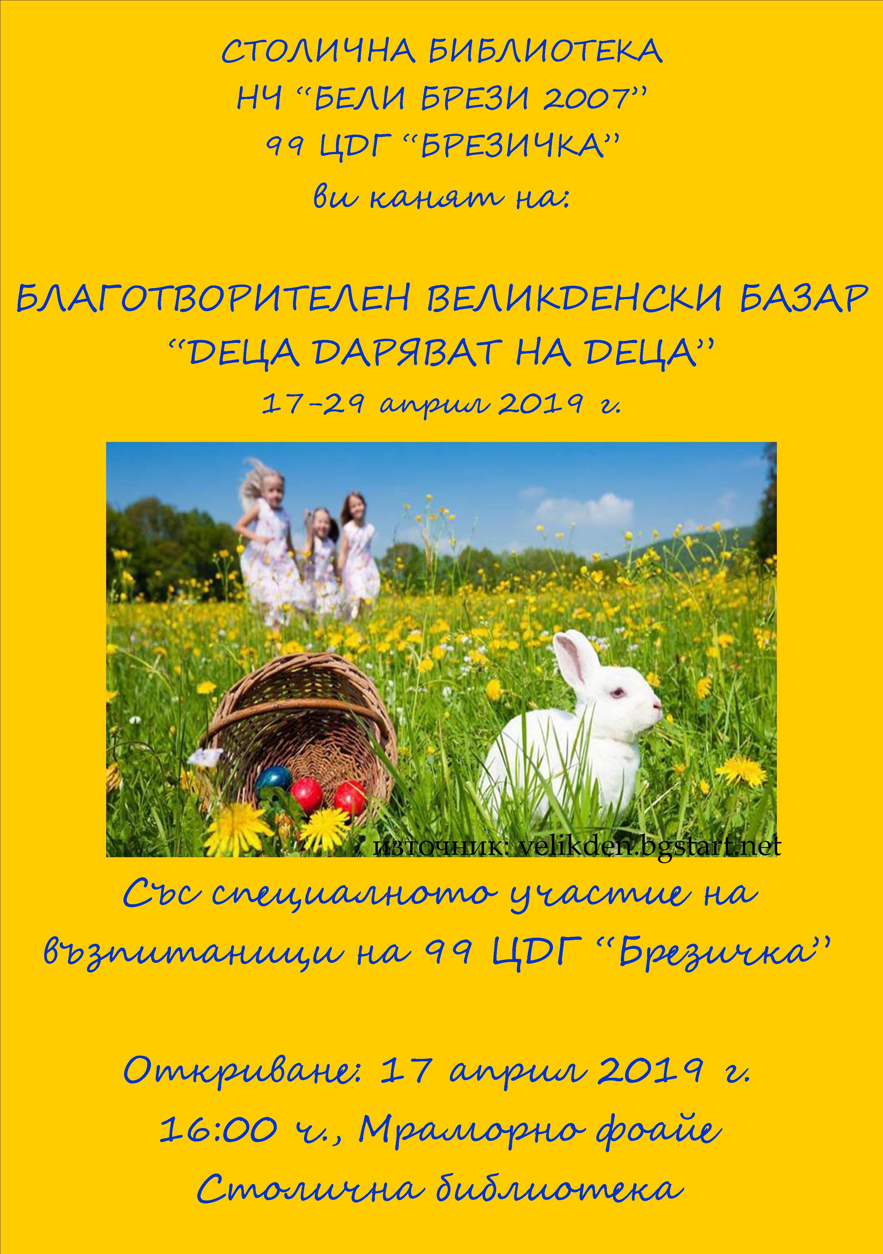 да открием заедно благотворителния Великденски базар „Деца даряват на деца“