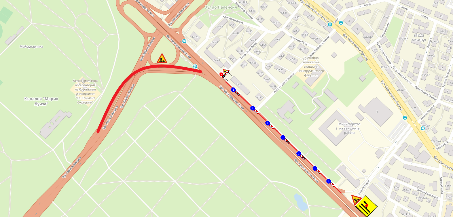 Временна организация на движението относно ремонт на мостово съоръжение след тунелна връзка от бул. „Цариградско шосе“ за ж.к. „Хладилника“