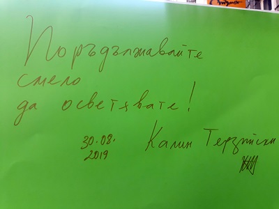 Също така могат да напишат своето послание, както постъпи писателят Калин Терзийски (приятел и читател на библиотеката), други наши читатели и малката Мая.