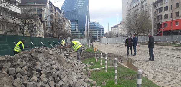 Към момента строителните бригади демонтират паважната настилка в участъка от пл. „Македония“ до "Руски паметник." Демонтирани са осветлението и контактно-кабелната мрежа с носещото въже и напречните въжета и е започнало извозването на паважа до складовете на "Софинвест".