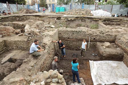 The archaeological surveys of the grounds on the square around the "Sveta Nedelya" church connected with the late-antique period, which for the fourth consecutive year are financed by the Sofia Municipality, are brought to an end. Nearly 3 000 silver coins were discovered that are currently kept at the Sofia History Museum and now we add golden ornaments. This announced on August 3 the Mayor of Sofia, Yordanka Fandakova at the excavations at “St Nedaya” Square. The Deputy Mayor of Sofia, Assoc. Prof. Dr. Todor Chobanov, also attended the inspection.