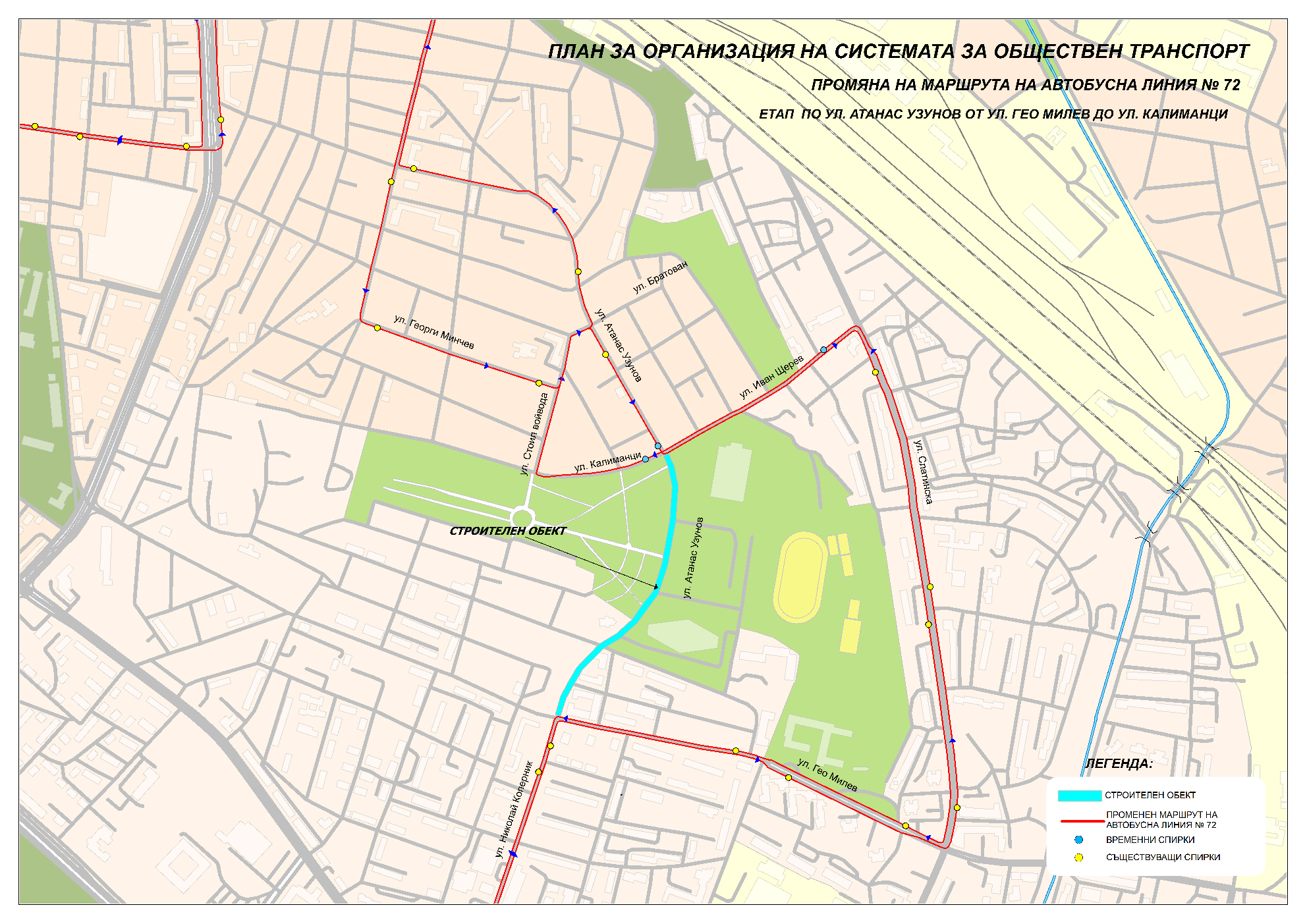От 18.04.2023 г. до 16.06.2023 г. автобусна линия № 72 ще се движи по променен маршрут: