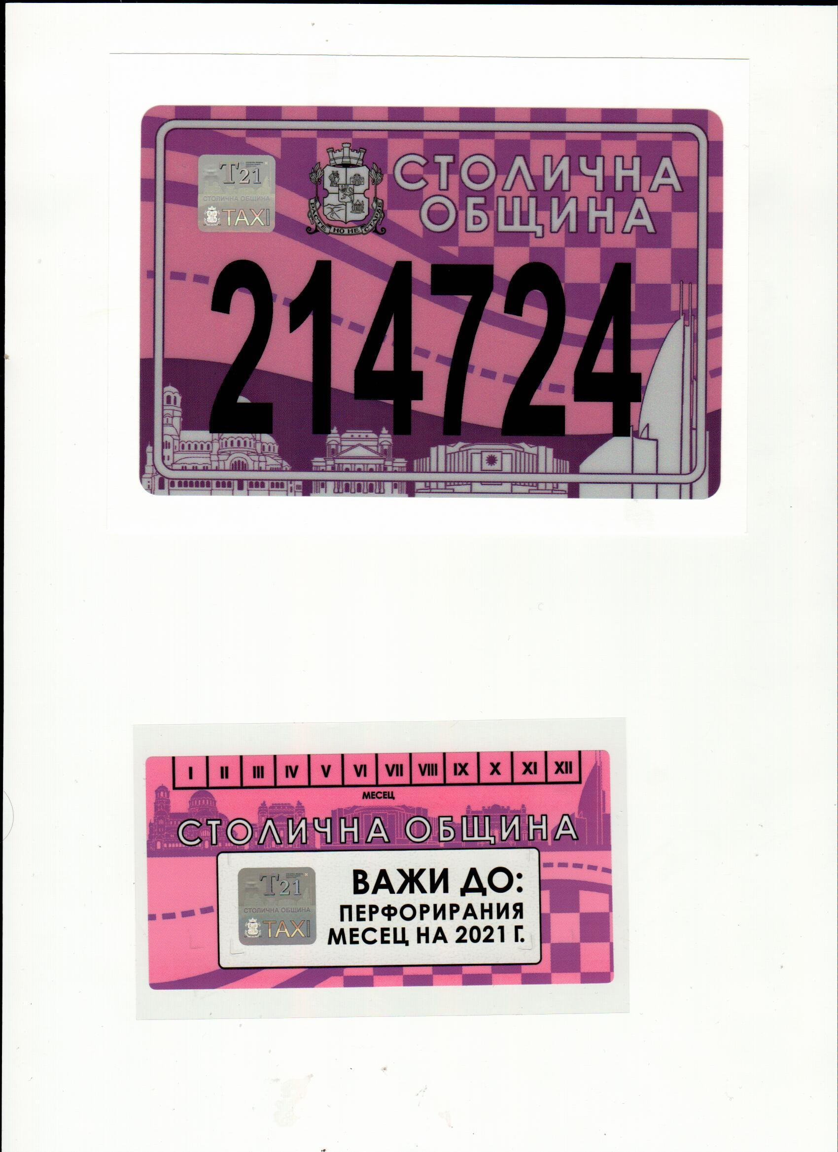 Валидни стикери за таксиметров превоз на пътници от 01.01.2021 до перфорирания месец на 2021 година